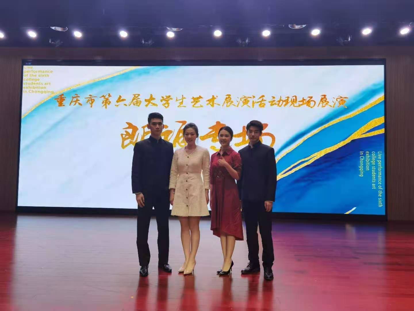 In Professional Groups Finals of the Live Performance of the Sixth College Students’ Art Exhibition (Recitation Section) in Chongqing on November 22, 2020, recitation work by Qing Jiahao, Chen Haoyuan, Zhang Xuanming, Zhou Huijie and Song Dawei won the first prize with 9.670 points. Another work recited by Li Jiaying, Chen Shiqi, Wang Hao and Wang Huiying, won the second prize with 9.474 points. Those 9 students all come from the Department of Broadcasting & Hosting Arts in Meishi Film Academy of Chongqing University.